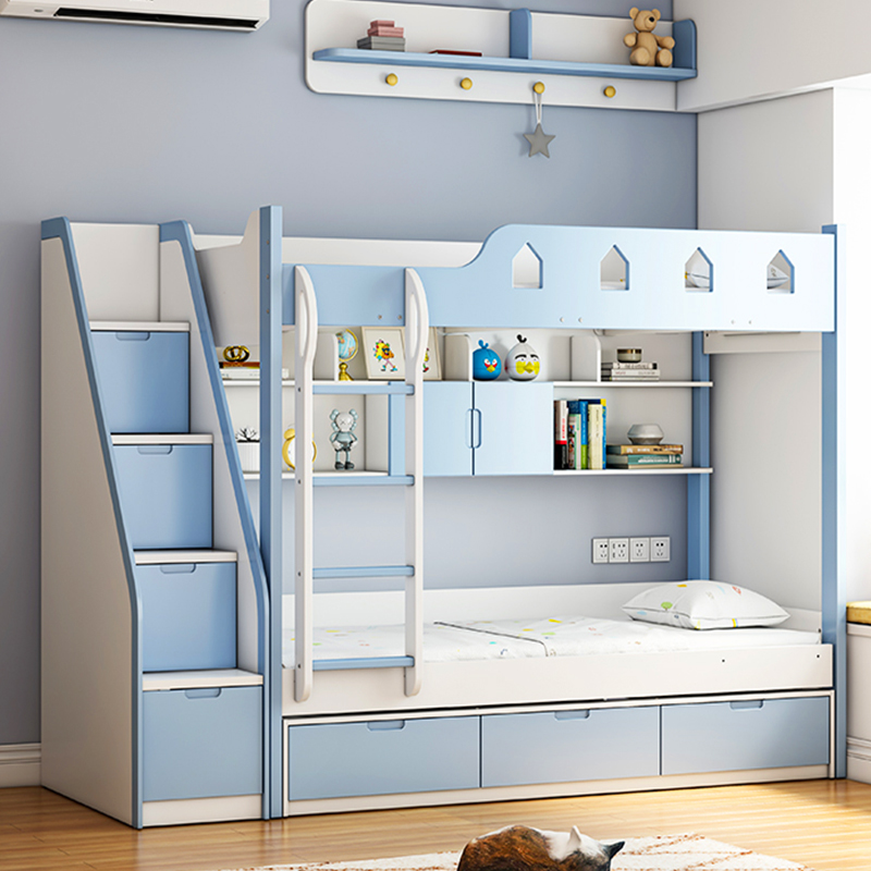 | Structure | Double bunk bed with integrated storage drawers |