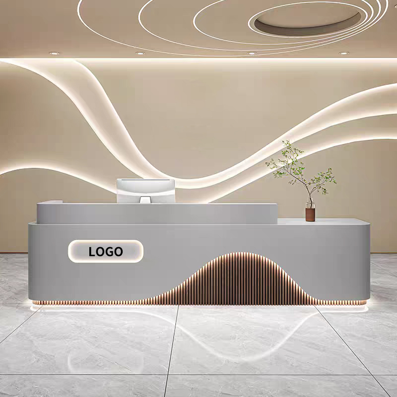 يُعدّ مكتب الاستقبال العصري هذا امتدادًا رائعًا لهويتك المؤسسية. فهو يجمع بين الخطوط الأنيقة واللمسات النهائية الراقية، ويوفر جوهرًانقش الشعاروخدمات التصميم الشخصيةيضمن هذا أن كل قطعة تعكس علامتك التجارية بشكل مثالي، مما يخلق نقطة محورية فريدة وقوية لمدخل ردهة الفندق أو مكتبك.