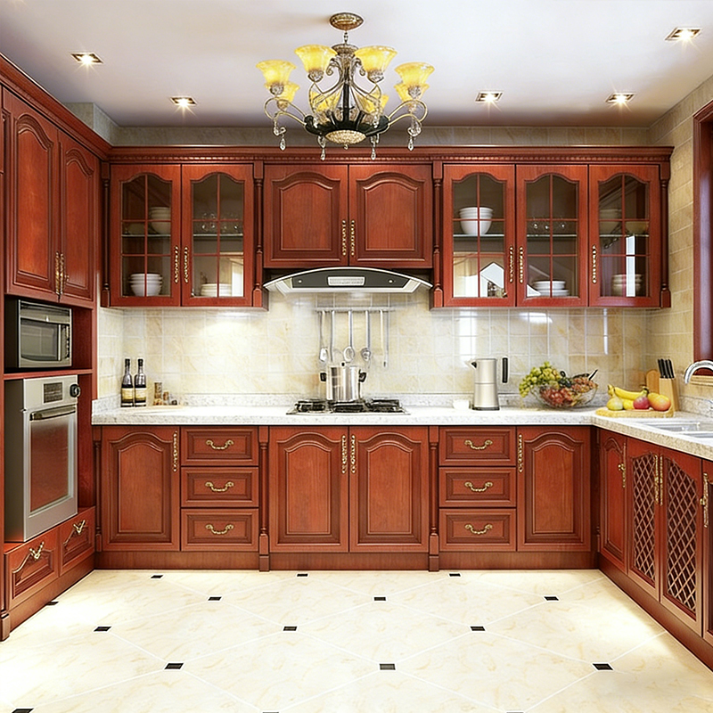 Chinese Style Brown Wood Lacquer Cabinet Design, Modern Furniture Set, Solid Wood Kitchen Cabinet Custom Manufacturer
