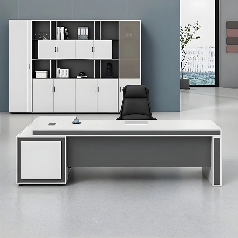 Modern Fashion Office Furniture Set Manager Desk Executive Modern L Shaped Executive Office Desk Side Cabinet Wooden Office Table