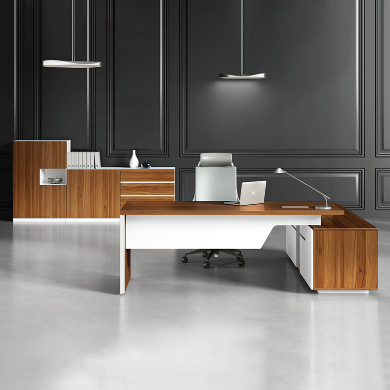 Escritorio de gerente en forma de L de MDF personalizado para oficinas en casa y espacios ejecutivos modernos