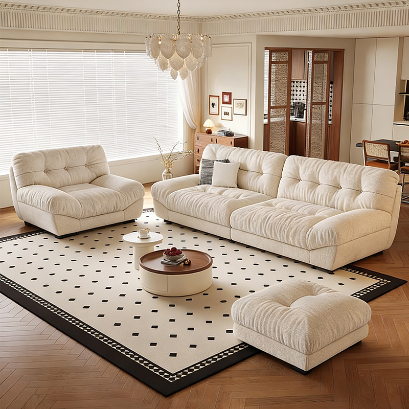 Elegant French-Modern Silhouette: Combines clean rectangular modules with soft curves for a look that is both contemporary and romantically French, commanding large spaces.