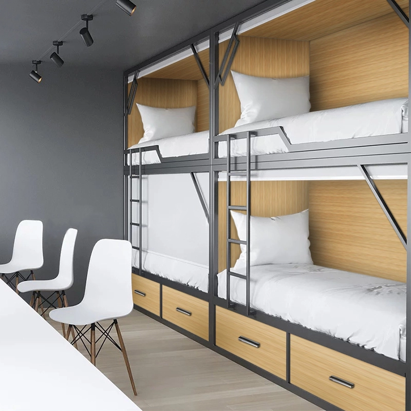 This bunk bed series is meticulously engineered for capsule hotels, hostels, and compact living spaces. Understanding the demands of high-frequency commercial use, stability and quiet are at the core of our design. The bed features a reinforced steel frame and a quiet structure, ensuring a peaceful sleep for the lower occupant even when the upper bunk moves, thereby enhancing both space utility and guest satisfaction.