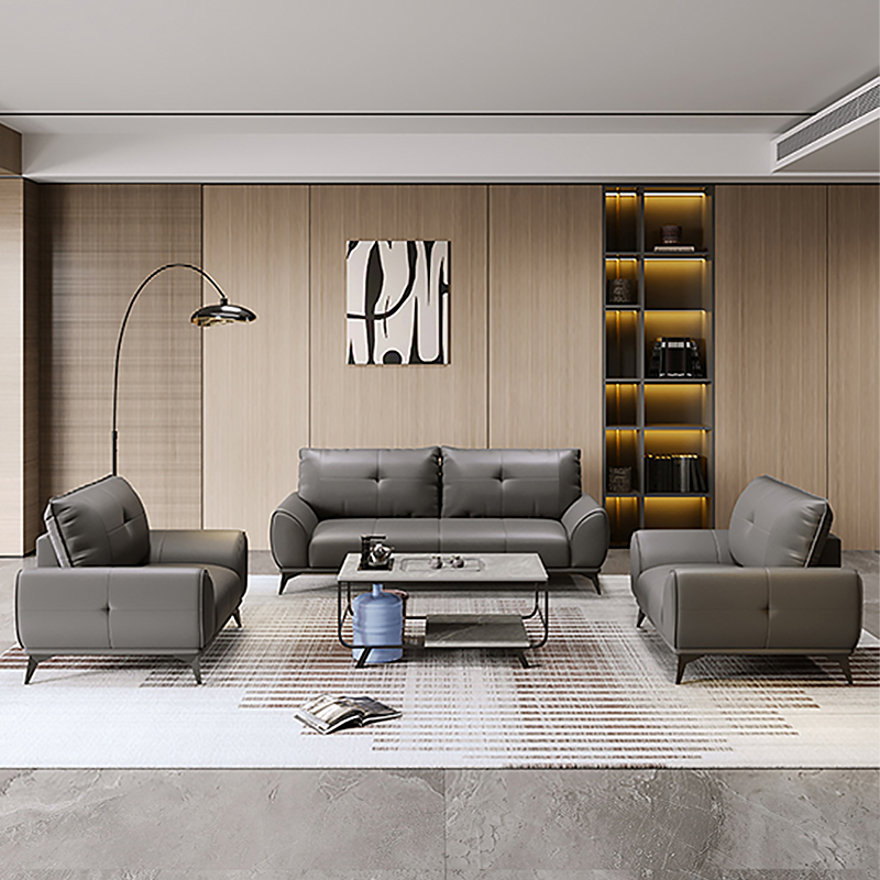 Office Leather Sofa Simple Business Reception Room Three People Coffee Table Set 3 + 2 + 1 Leisure