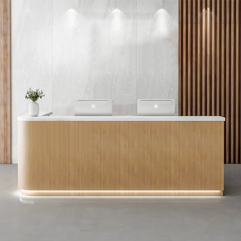 The office reception desk is specially designed for high-end hotels and business spaces, integrating modern minimalist design and ergonomic concepts. It uses solid wood composite substrates and metal frame structures, providing three configuration options: L-shaped/curved/straight, suitable for multiple landscape needs such as lobbies, executive floors, conference centers, etc.
