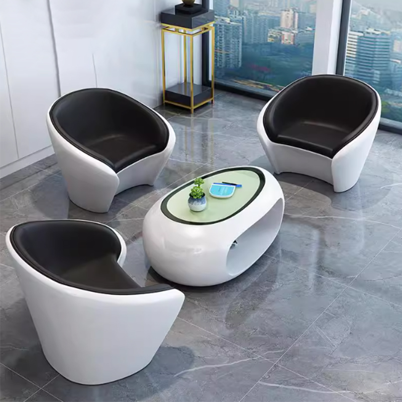 This sofa and coffee table set is designed for modern apartments, offices, and reception areas. It skillfully blends a glossy lacquered leather upholstery with a sturdy metal or wood frame. With its sleek lines, plush seating, and minimalist table design, it creates a stylish and functional focal point for lounging or casual meetings, perfectly suited for contemporary interiors that value both personality and practicality.